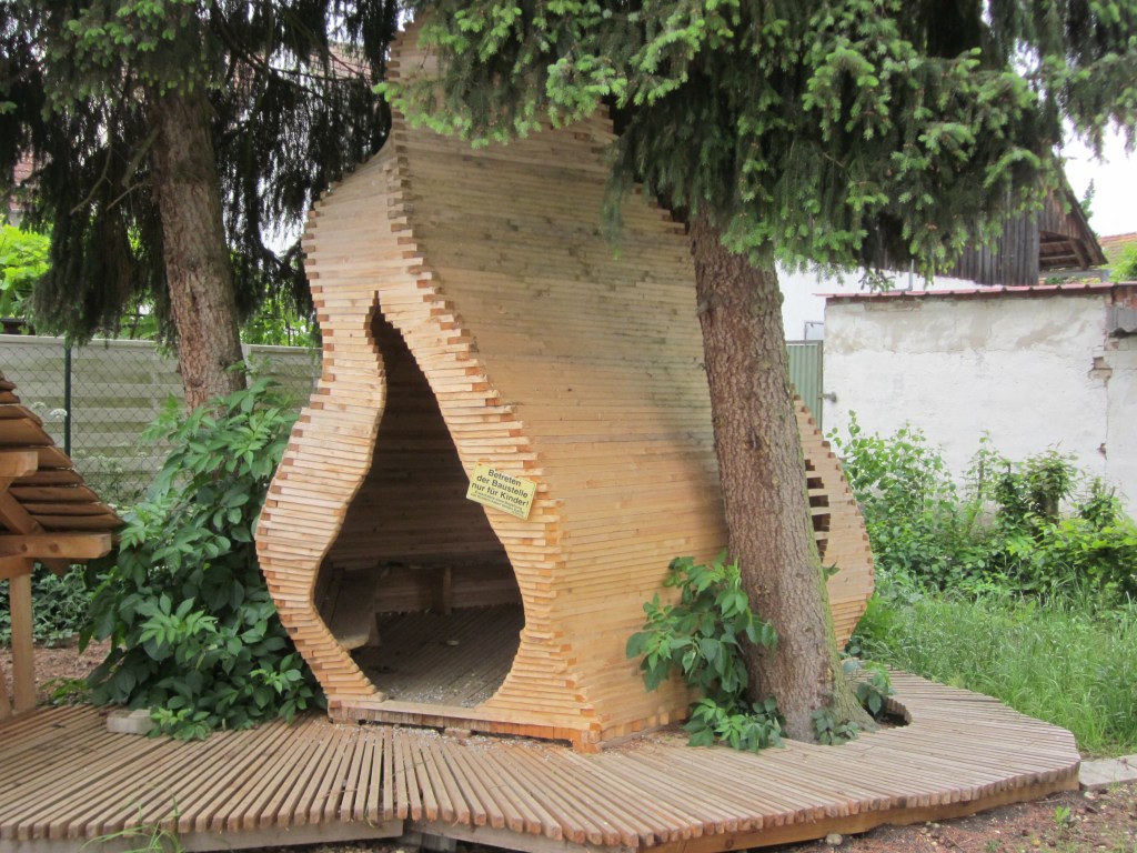 An einem Tag gebaut. Unterstellmöglichkeit für 6 Mülltonnen einer Schule. Günstig, künstlerisch und nachhaltig.